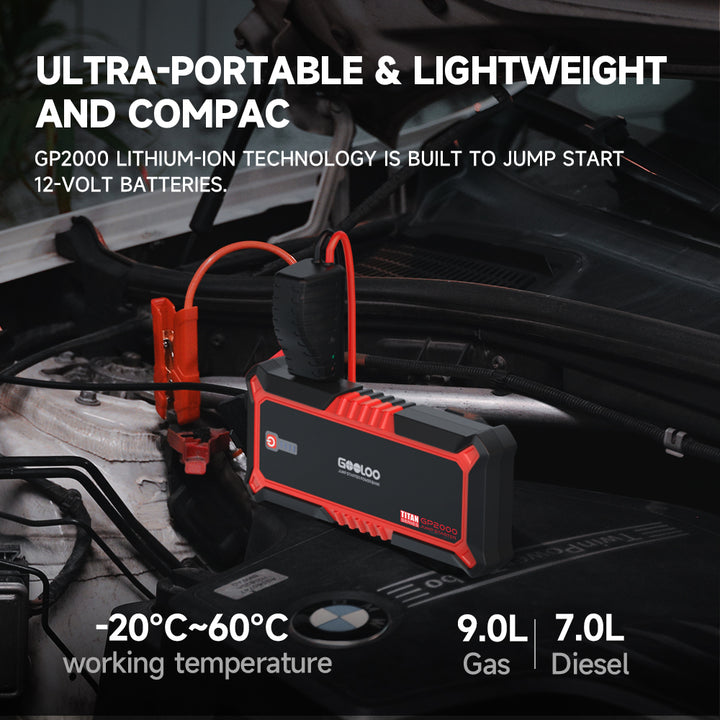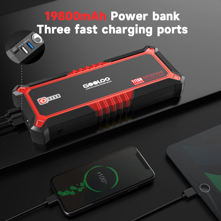 ā” 2000A Power: Jump-starts 12V vehicles (up to 8L gas/6L diesel) safely and quickly.